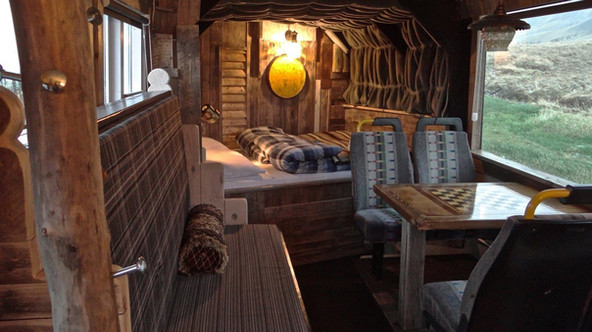 From re-used timber, disguarded objects, second-hand light fittings and the old bus seating we have constucted a unique envirnoment within which to spend a night or two in this landscape. The opportunity exists to connect to nature, within and without in a most intimate manner within what is now commonly referred to as Glamping. This Icelands Glamorous Camping experience.